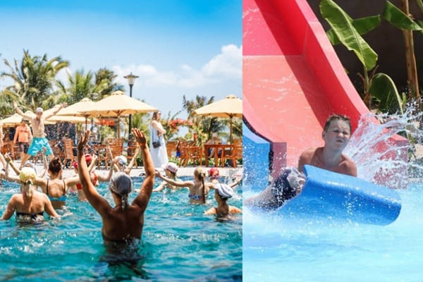 나트랑 리비에라 리조트 아쿠아 파크는 다양한 워터 슬라이드, 유아용 풀, 수중 놀이터 등으로 구성되어 가족 단위 여행자에게 최적의 즐길 거리입니다
